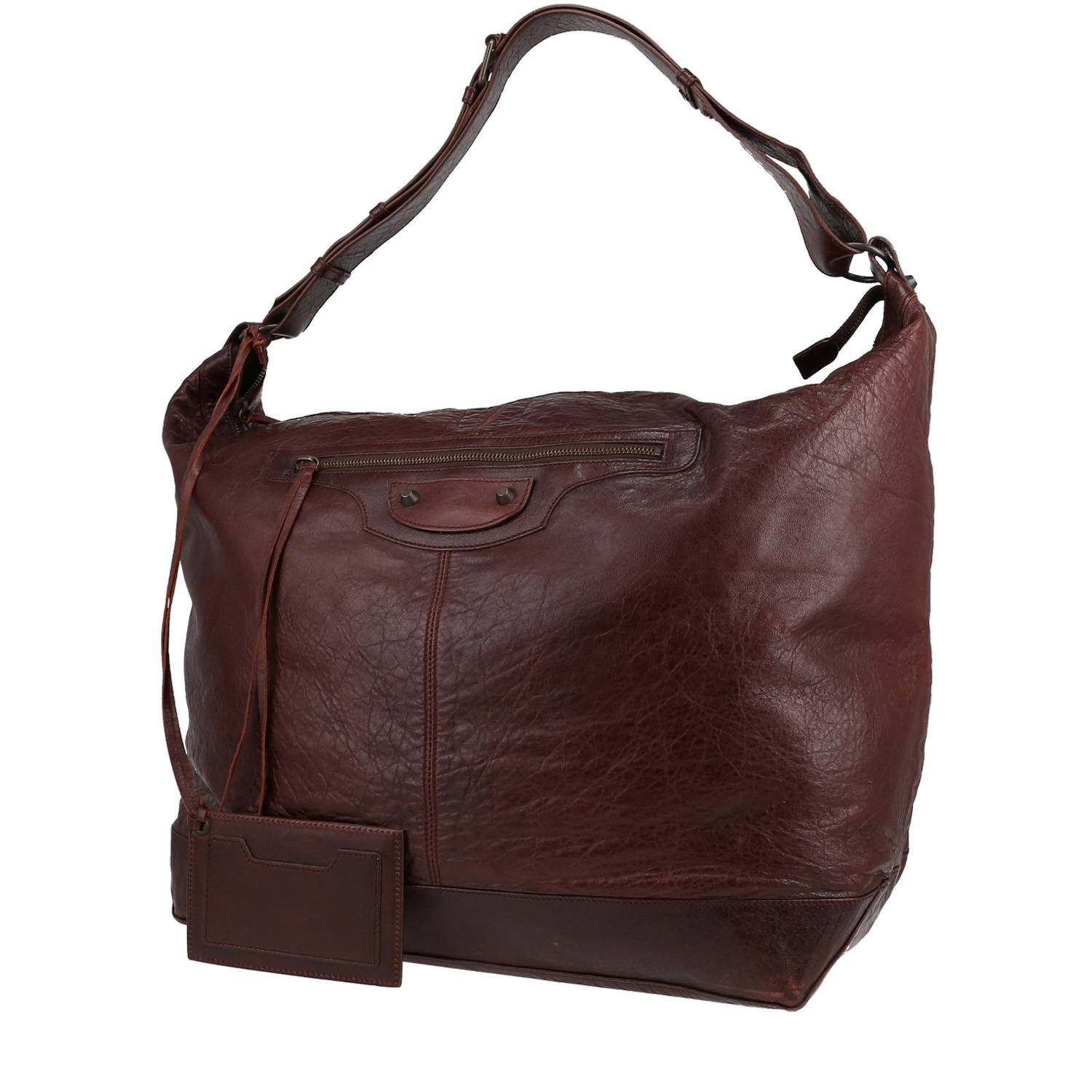 Shopping bag Balenciaga in pelle marrone, inserti in metallo invecchiato, una tracolla in pelle marrone da portare a mano o in spalla.