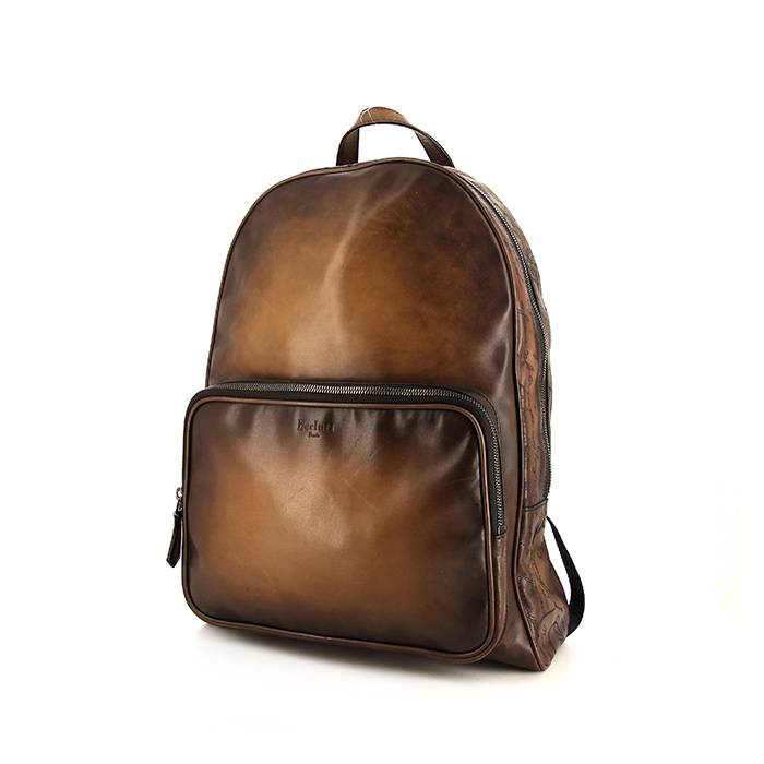 Zaino Berluti in pelle sfumato marrone e tela nera Ref Collector Square: 37 96 53