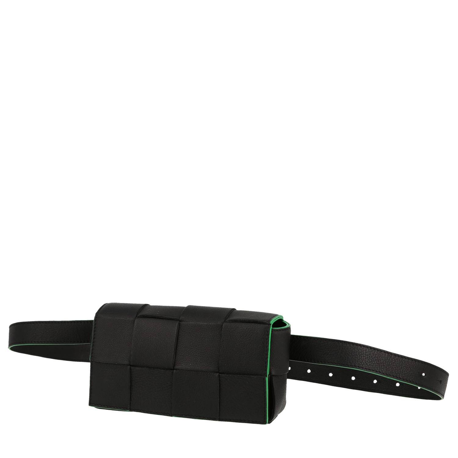 Magnifica pochette-cintura Bottega Veneta Cassette in pelle intrecciata nero, una tracolla regolabile in pelle nera portato in vita.