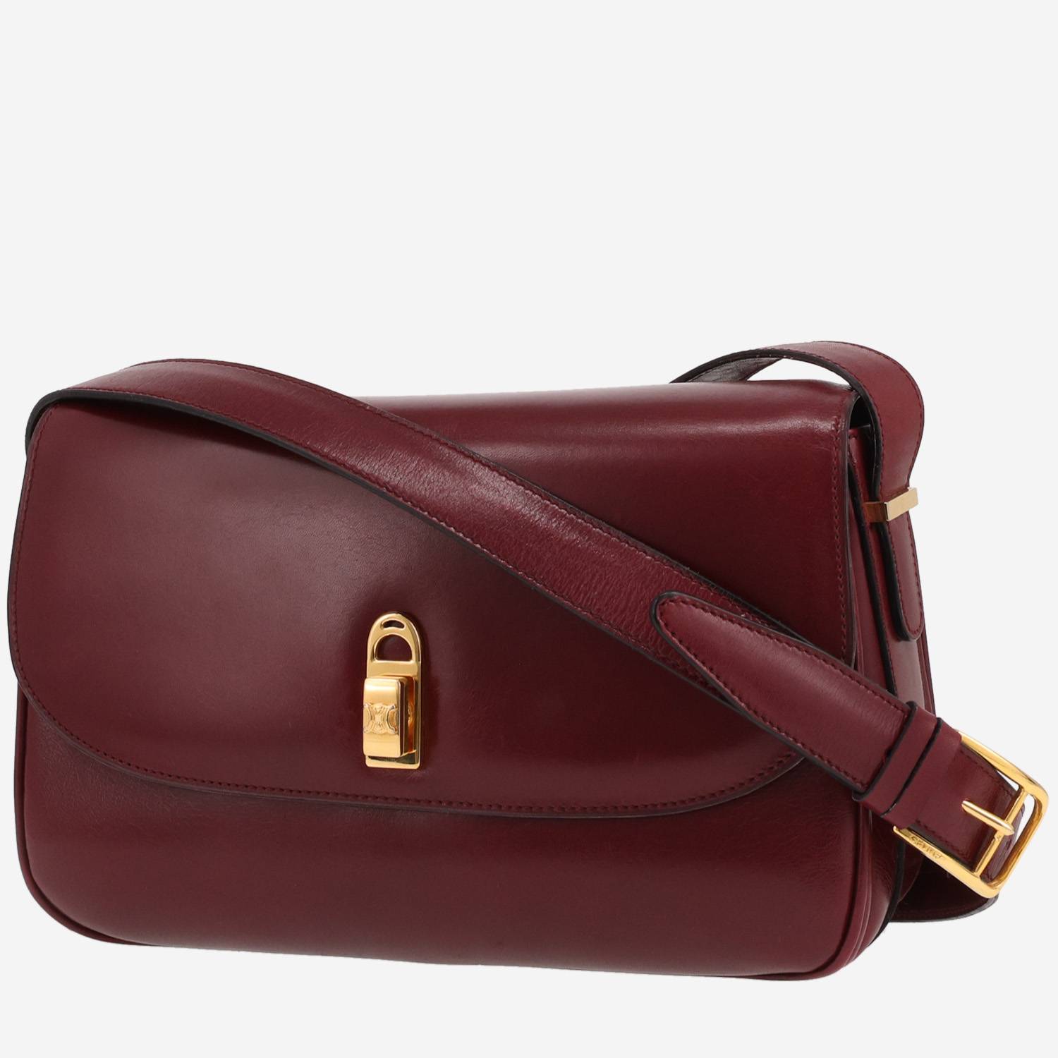 Magnifica borsa a tracolla Celine in pelle bordeaux, inserti in metallo dorato, una tracolla regolabile in pelle bordeaux da portare in spalla o a tracolla.