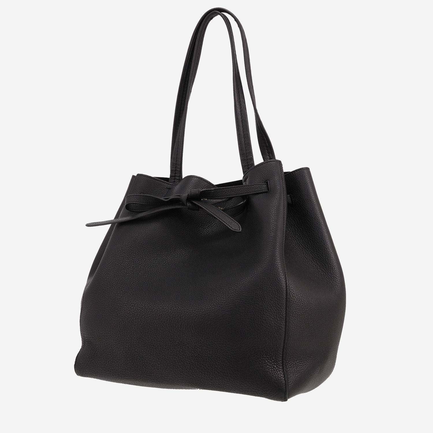 Elegante shopping bag Celine Cabas Phantom in pelle martellata nero, doppia tracolla in pelle nera da portare a mano o in spalla.