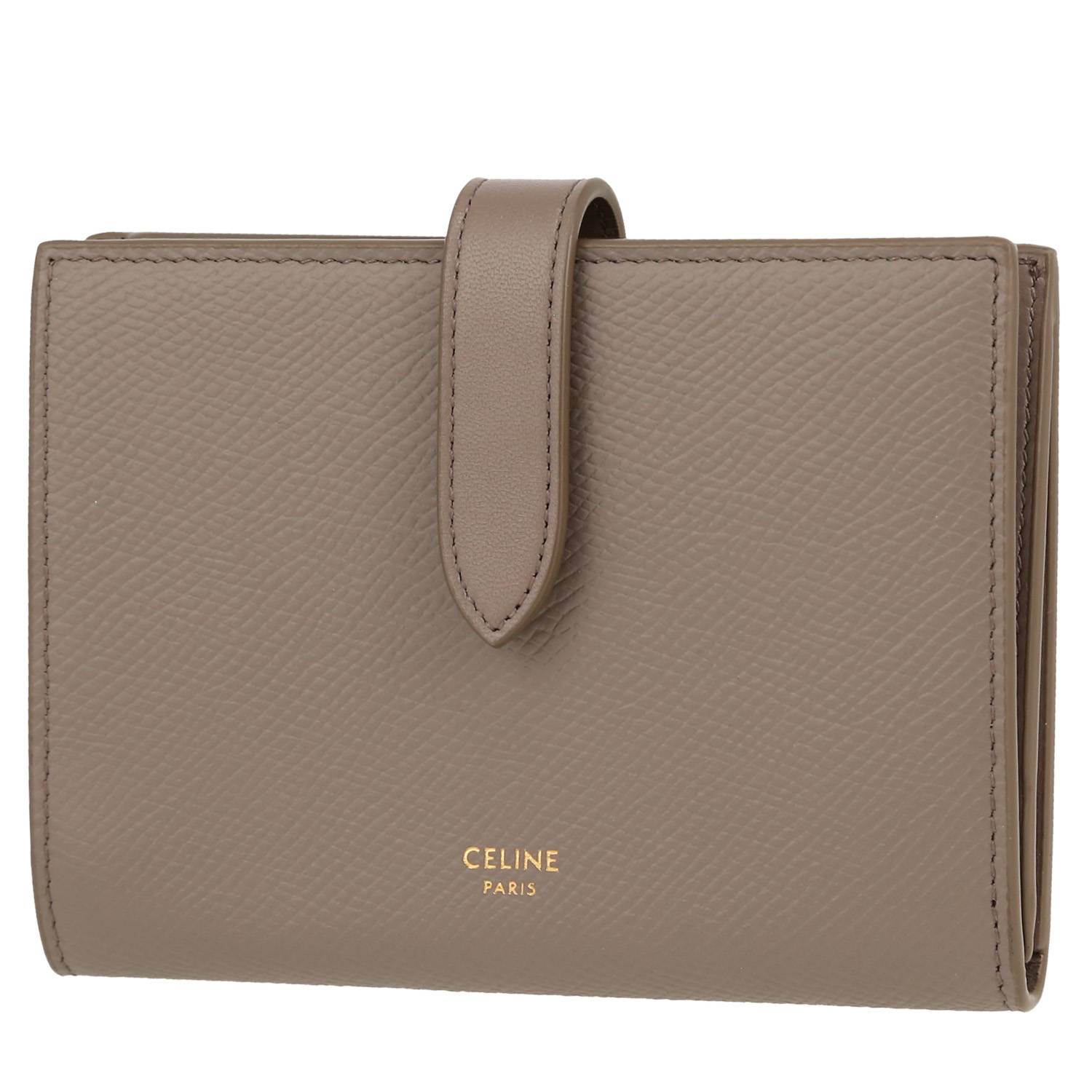 Incantevole portafogli Celine piccolo in pelle martellata rosa, inserti in metallo dorato da portare a mano.
