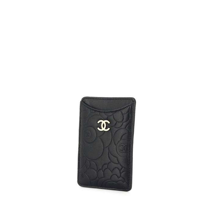 Chanel mobile holder in black leather with camellia pattern Ref Collector Square: 28 52 50