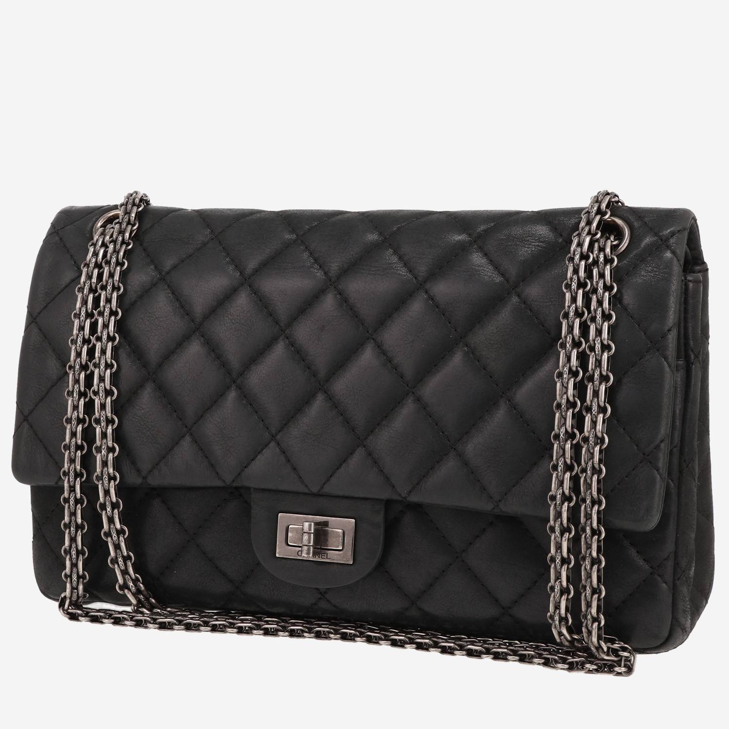 Bellissima borsa a tracolla Chanel 2.55 modello grande in pelle iridescente trapuntata grigio, inserti in metallo argentato, una tracolla a catena trasformabile in metallo argentato da portare a mano, in spalla o a tracolla.
