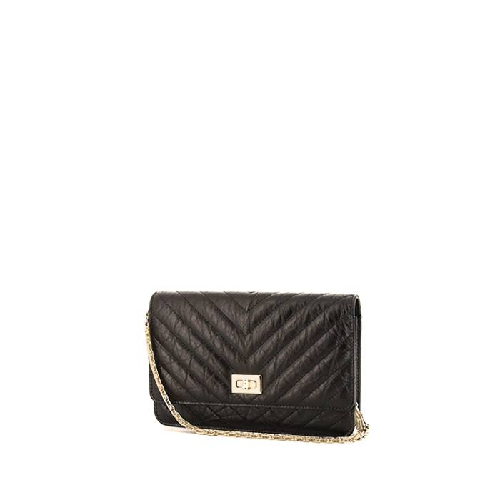 Borsa a tracolla Chanel 2.55 - Wallet on Chain in pelle trapuntata a zigzag nera Ref Collector Square: 36 80 57
