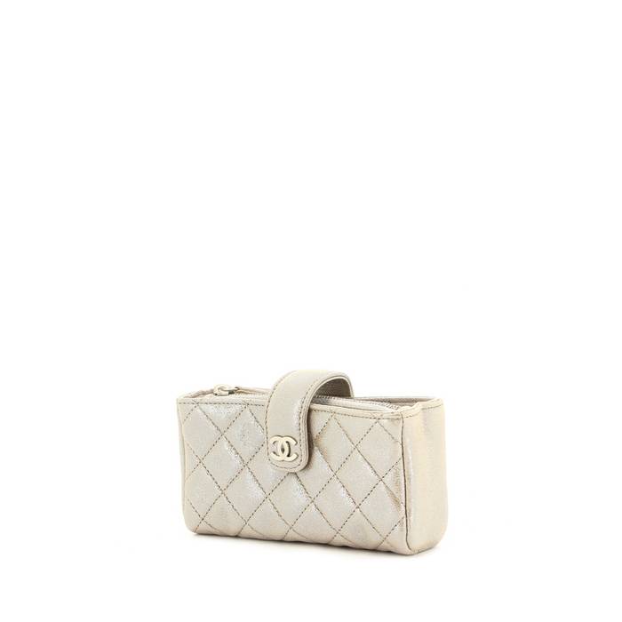 Splendido borsellino in pelle trapuntata argentata, inserti in metallo argentato, da portare a mano.