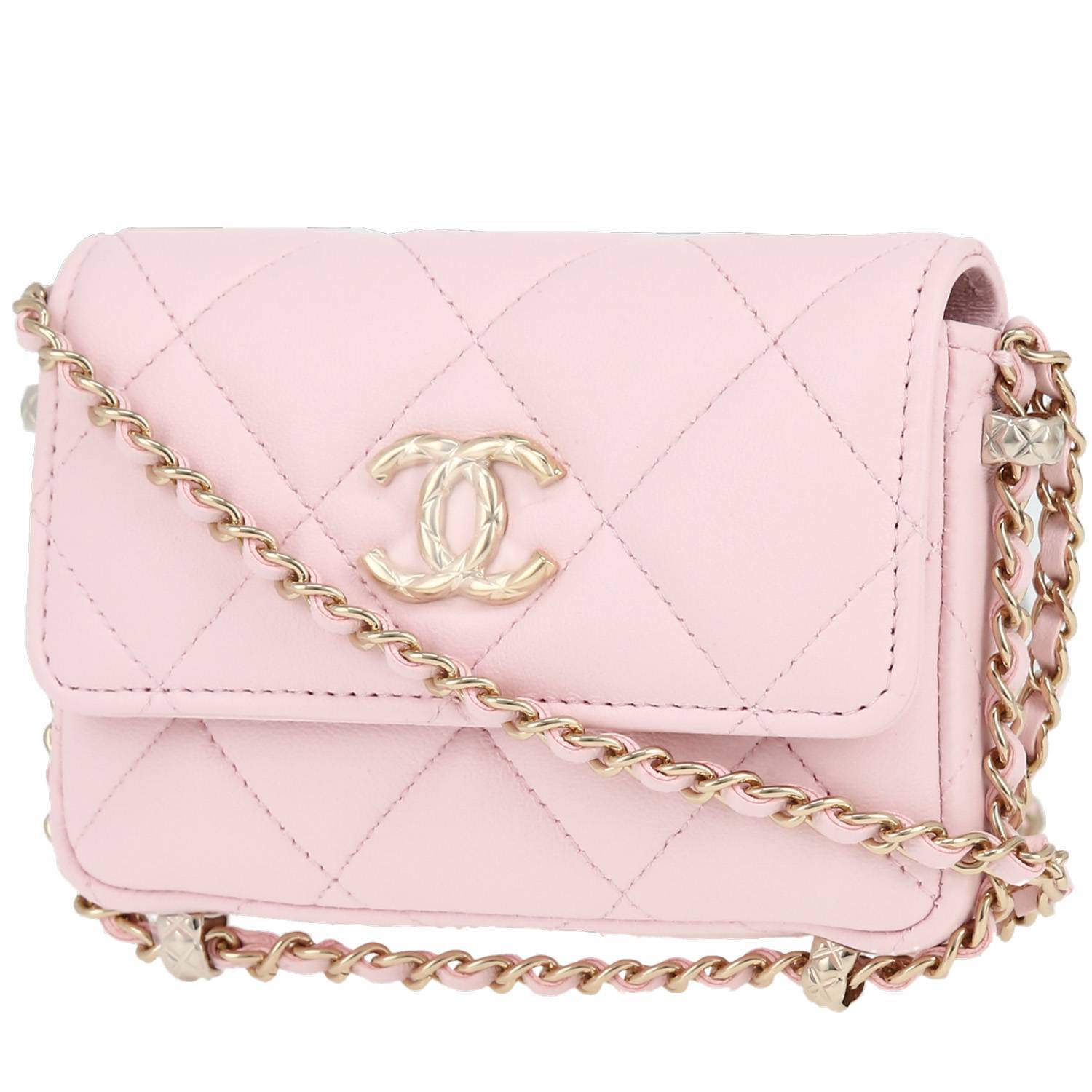 Incantevole borsa a tracolla Chanel Editions Limitées mini in pelle trapuntata rosa, inserti in metallo dorato, una tracolla a catena in metallo dorato con intrecci di pelle rosa da portare in spalla o a tracolla.