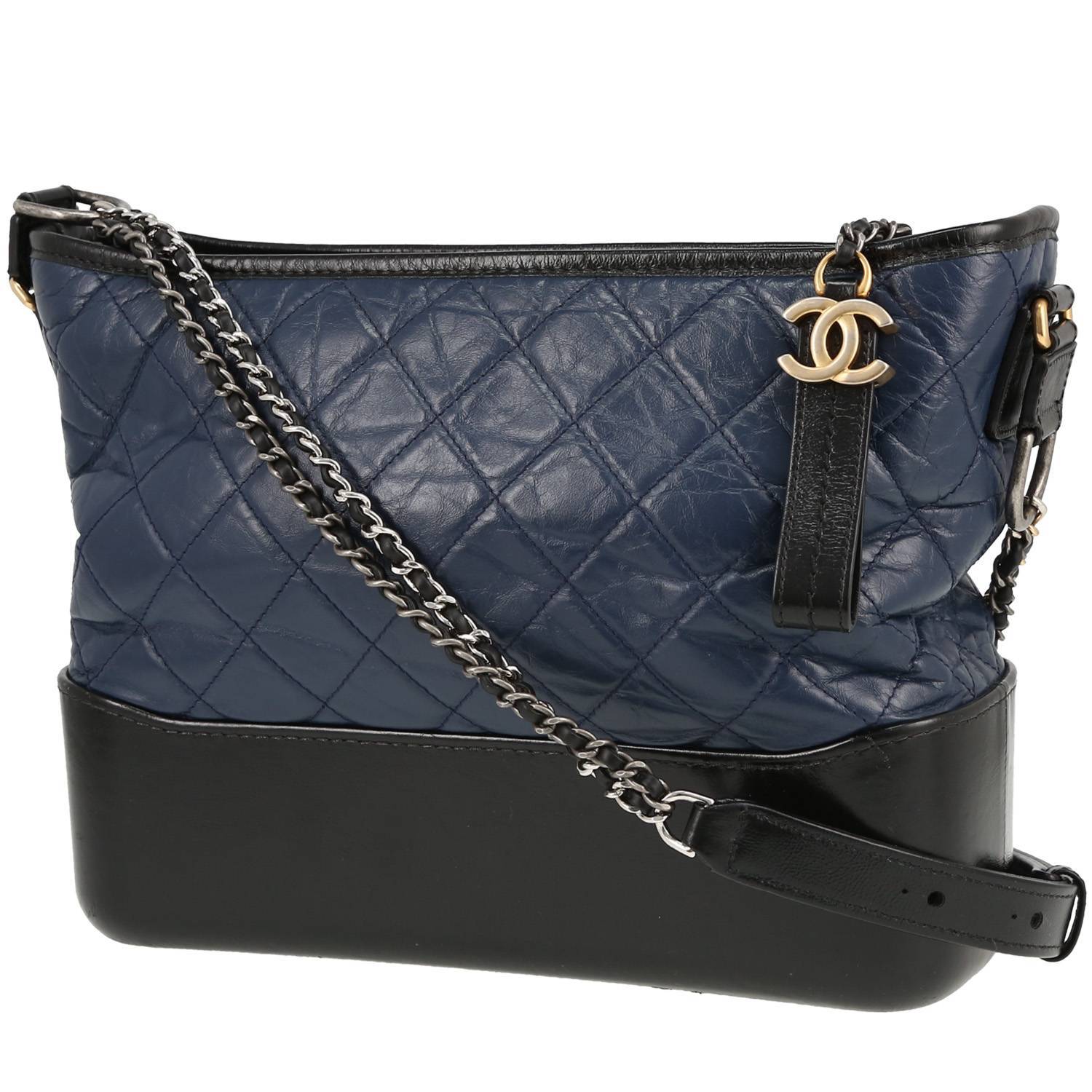 Borsa a tracolla Chanel Gabrielle modello medio in pelle trapuntata blu e pelle liscia nera Ref Collector Square: 40 62 40