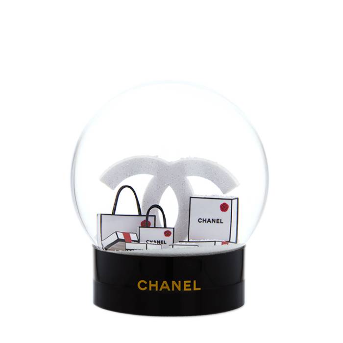 Inimitabile palla di neve Chanel in plexiglas e trasparente e plexiglas nero.