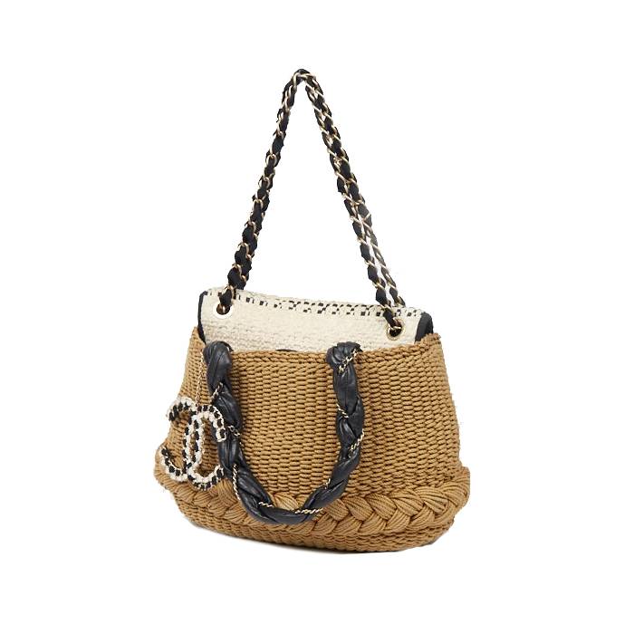 Shopping bag Chanel in tela intrecciata beige e pelle nera Ref Collector Square: 39 01 49