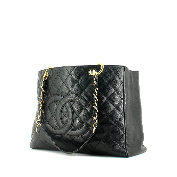 Borsa Grand Shopping in pelle martellata e trapuntata nera Ref Collector Square: 32 77 55