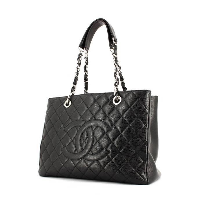 Shopping bag Grand Shopping in pelle martellata e trapuntata nera Ref Collector Square: 32 34 73