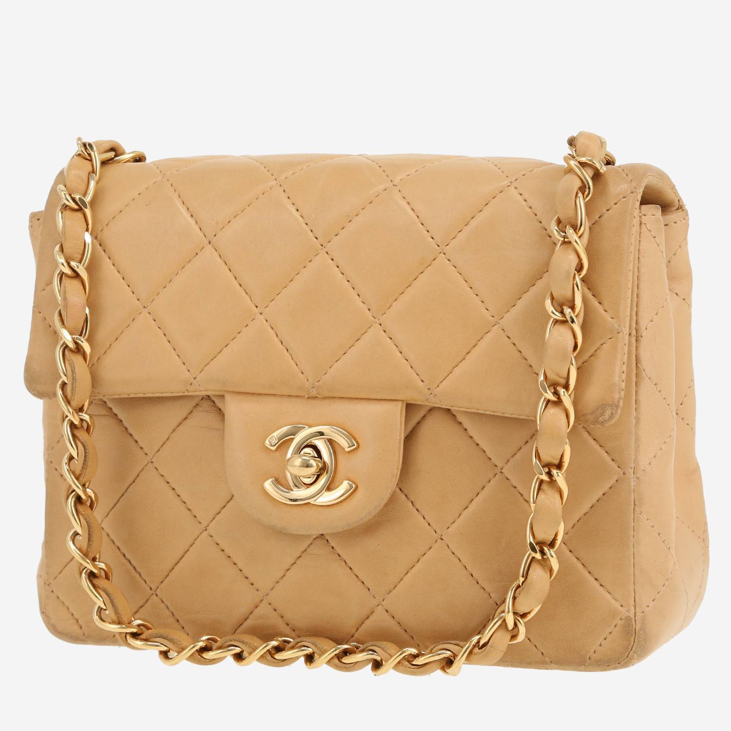 Borsa a tracolla Chanel Mini Timeless in pelle trapuntata beige Ref Collector Square: 38 86 37