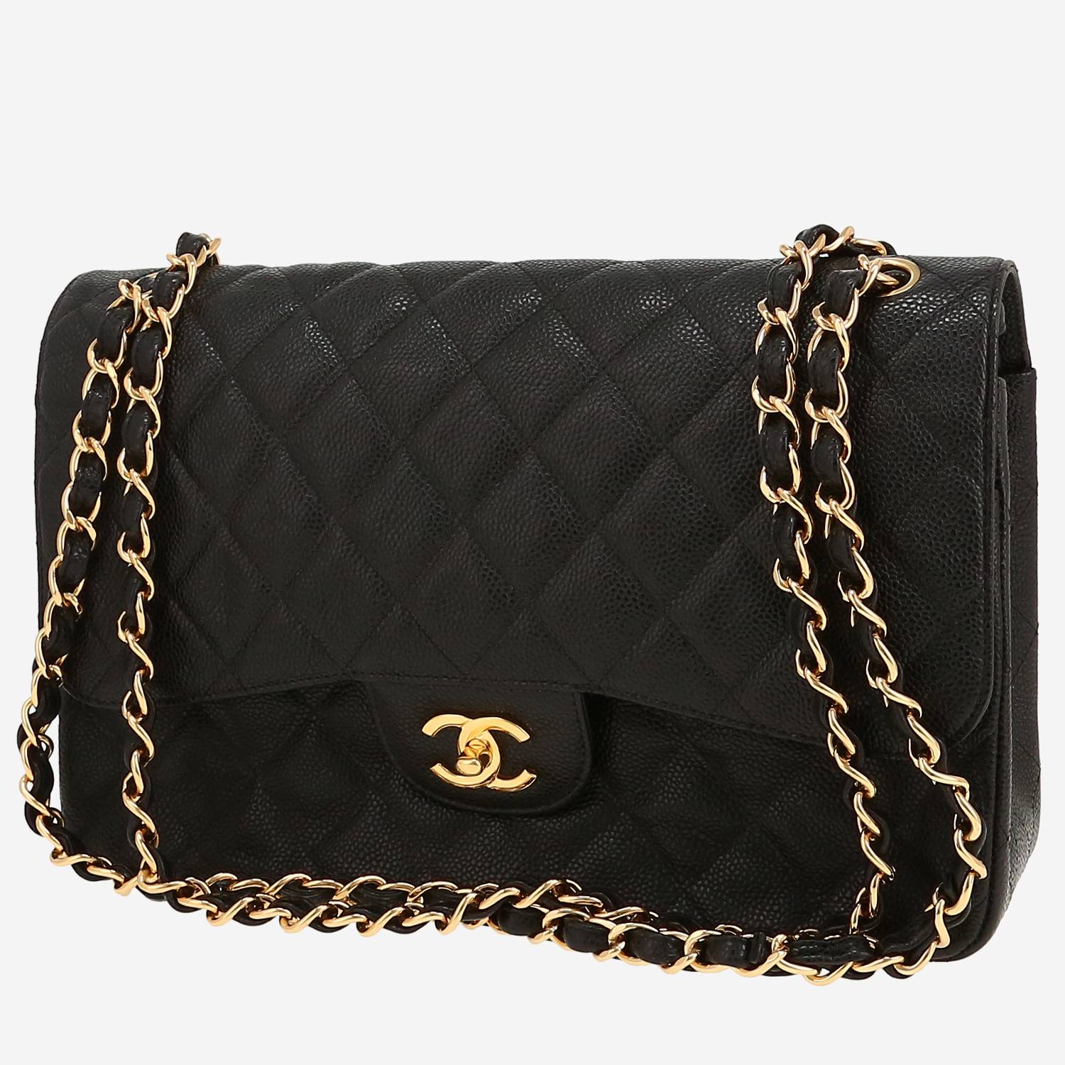 Splendida borsa a tracolla Chanel Timeless Jumbo in pelle martellata e trapuntata nero, inserti in metallo dorato, una tracolla a catena in metallo dorato con intrecci di pelle nera da portare a mano, in spalla o a tracolla.