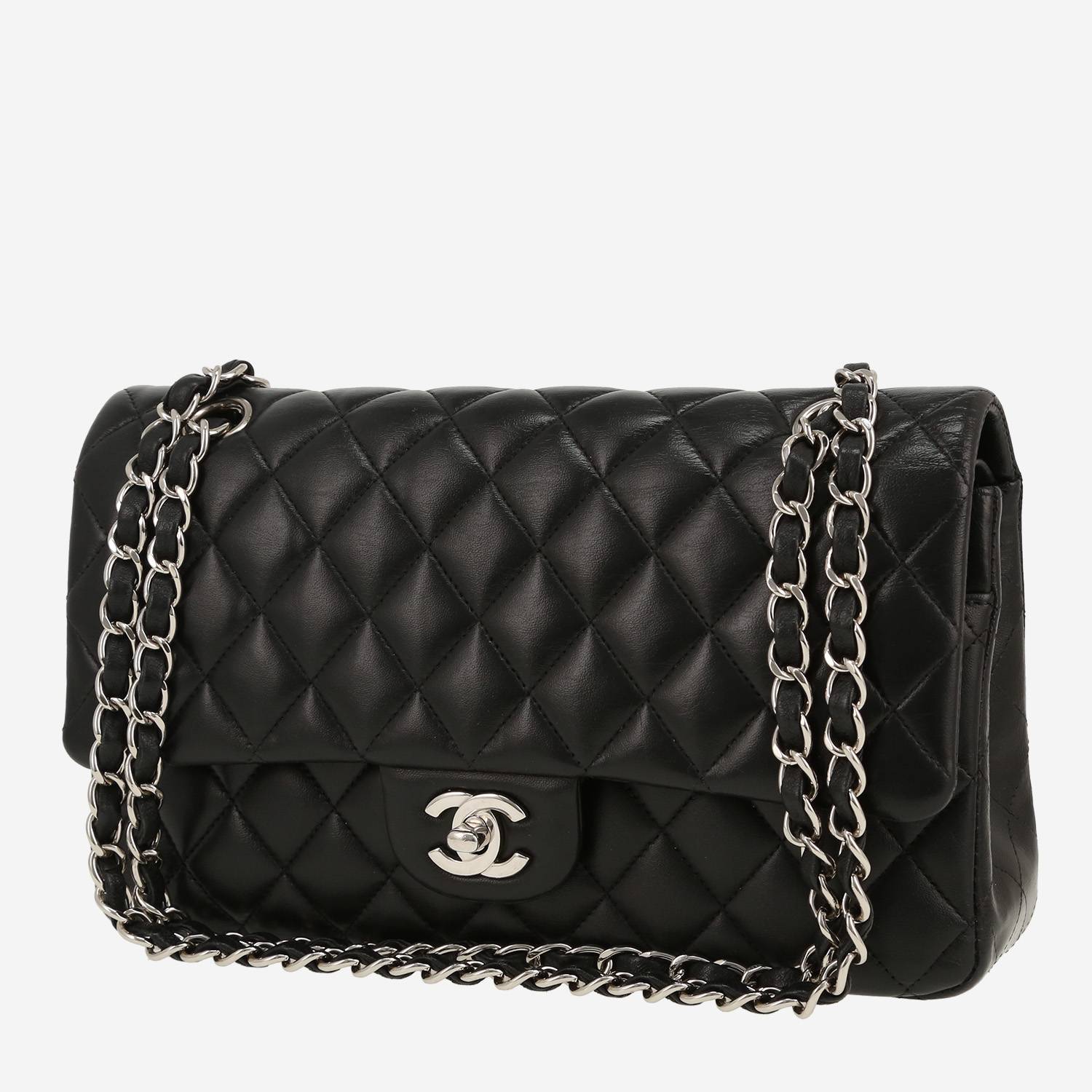 Magnifica borsa Chanel Timeless Classic in pelle trapuntata nero, inserti in metallo argentato, una tracolla a catena trasformabile in metallo argentato con intrecci di pelle nera da portare a mano o in spalla.