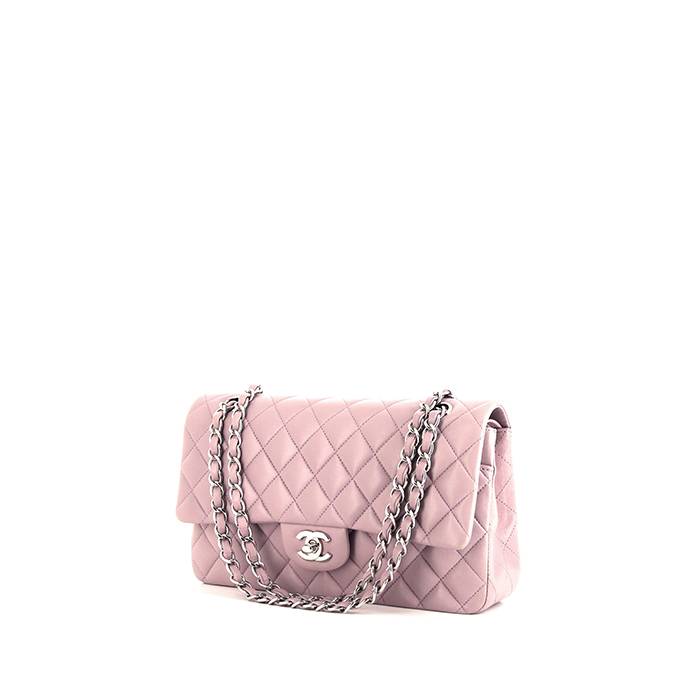 Intramontabile borsa Chanel Timeless in pelle trapuntata, inserti in metallo argentato, tracolla a catena in metallo argentato con intrecci di pelle da portare a mano o in spalla.