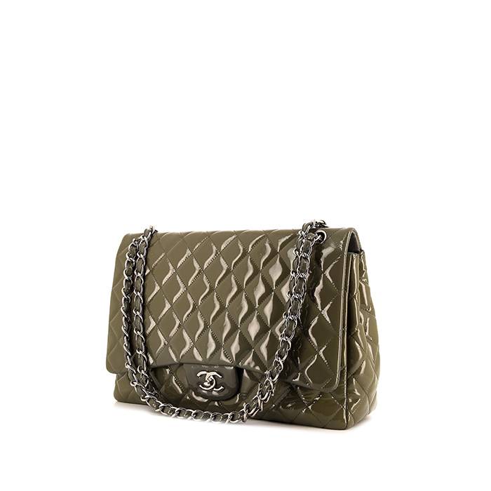 Borsa Chanel Timeless Maxi Jumbo in pelle verniciata e foderata verde Ref Collector Square: 35 42 99