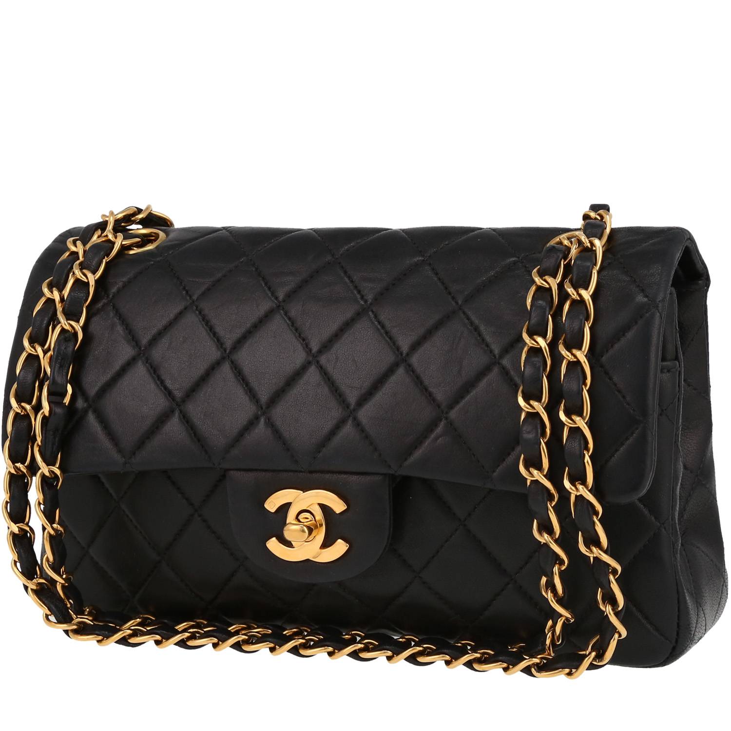 Bellissima borsa Chanel Timeless modello piccolo in pelle trapuntata nero, inserti in metallo dorato, una tracolla a catena trasformabile in metallo dorato con intrecci di pelle nera da portare a mano o in spalla.