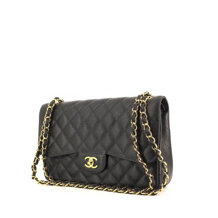 Borsa Timeless jumbo in pelle martellata e trapuntata nera Ref Collector Square: 32 46 68