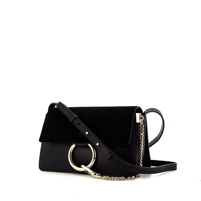 Inimitabile borsa a tracolla Chloé modello piccolo in pelle nera e camoscio nero, inserti in metallo dorato e argentato, tracolla regolabile in pelle nera da portare in spalla o a tracolla.