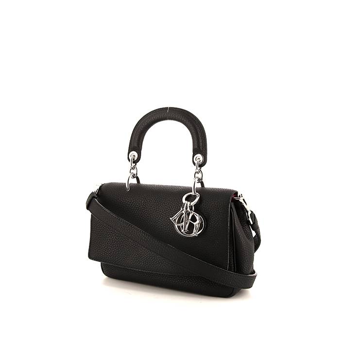 Originale borsa a tracolla Dior Be Dior in pelle nera, inserti in metallo argentato, manico semplice in pelle nera, tracolla rimovibile regolabile in pelle nera da portare a mano in spalla o a tracolla.