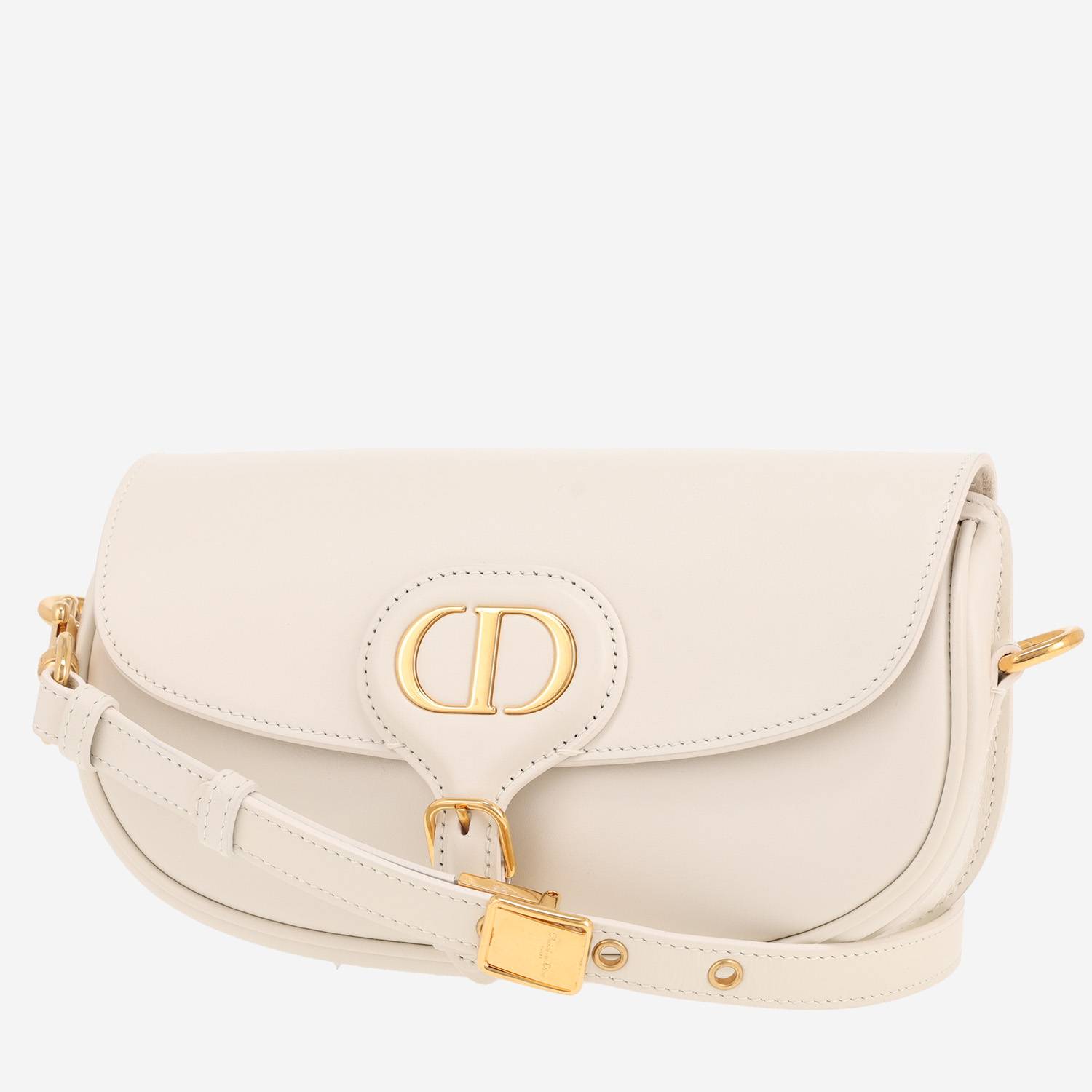 Splendida borsa a tracolla Dior Bobby East-West in pelle bianco sporco, inserti in metallo dorato, tracolla regolabile in pelle bianco sporco da portare in spalla o a tracolla.