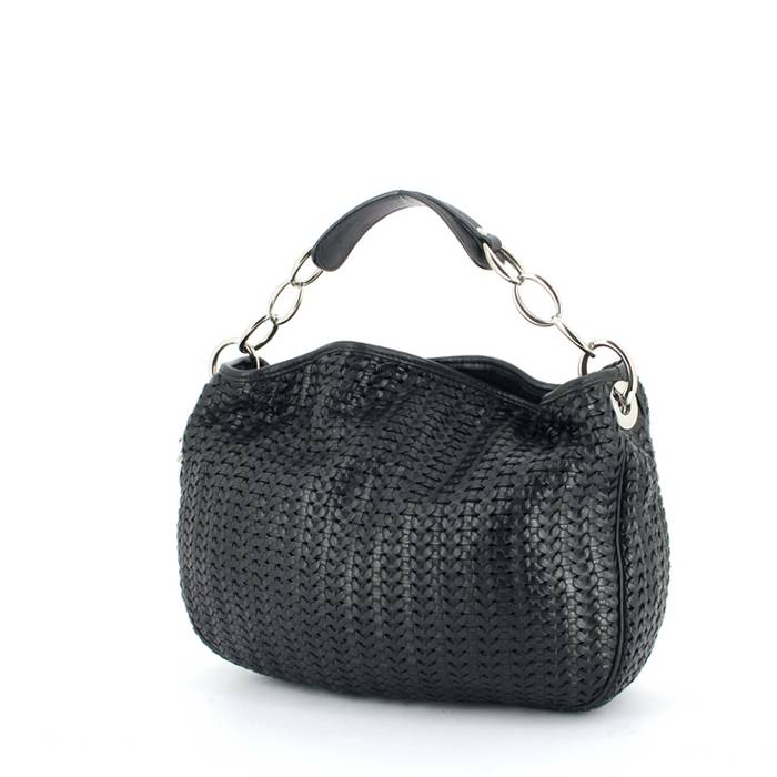 Borsa Dior in pelle intrecciata nera, inserti in metallo argentato, manico in pelle nera e metallo argentato da portare a mano o in spalla.