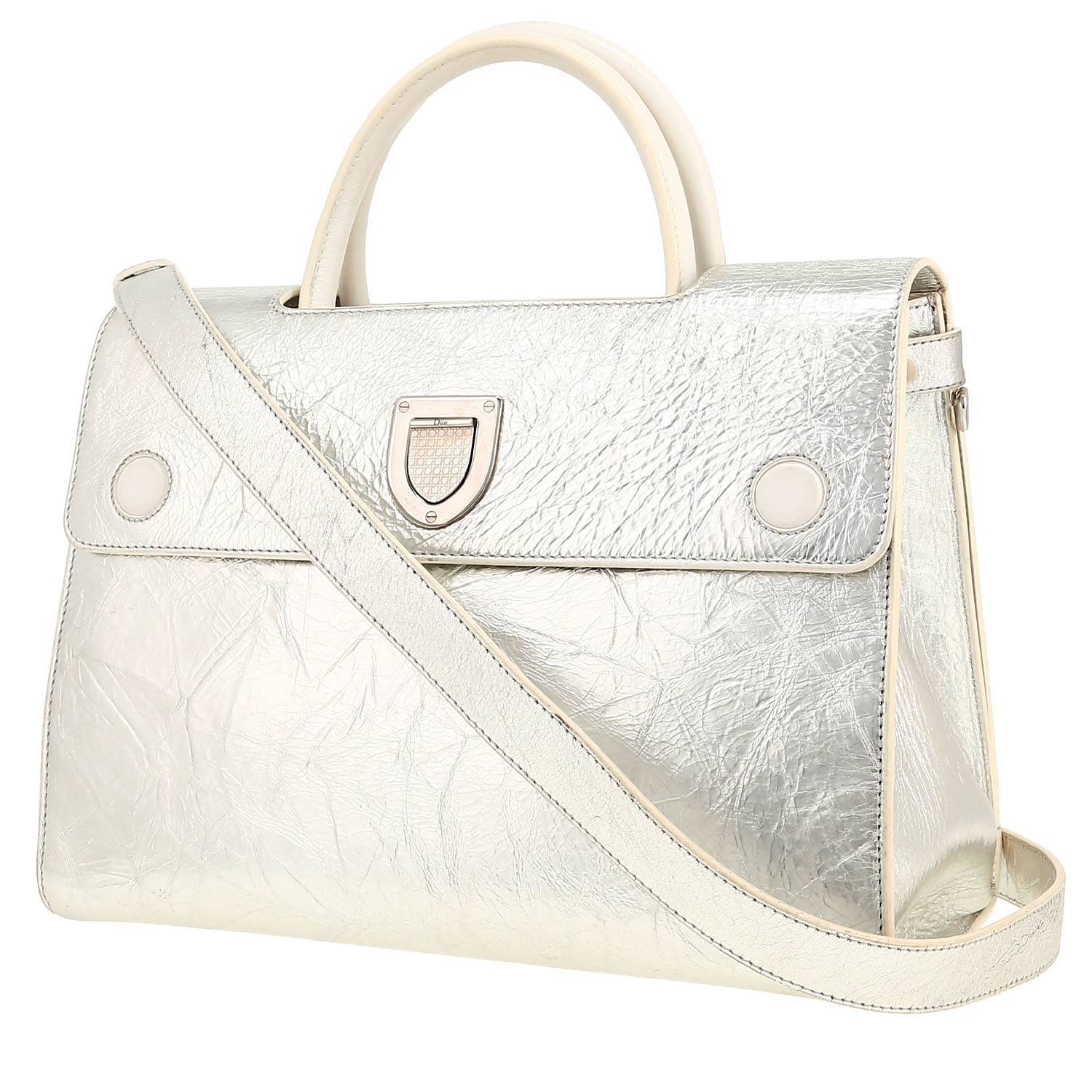 Bellissima borsa Dior Diorever in pelle argentato, inserti in metallo argentato, doppio manico in pelle argentata, una tracolla rimovibile regolabile in pelle argentata da portare a mano, in spalla o a tracolla.
