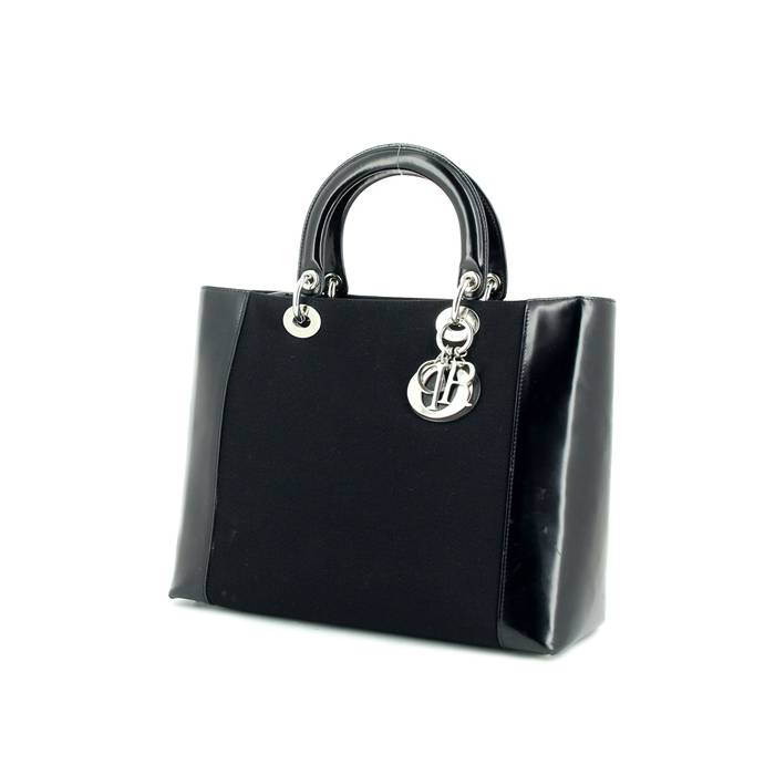 Dior Lady Dior large model in black canvas and patent leather Ref Collector Square: 26 20 47