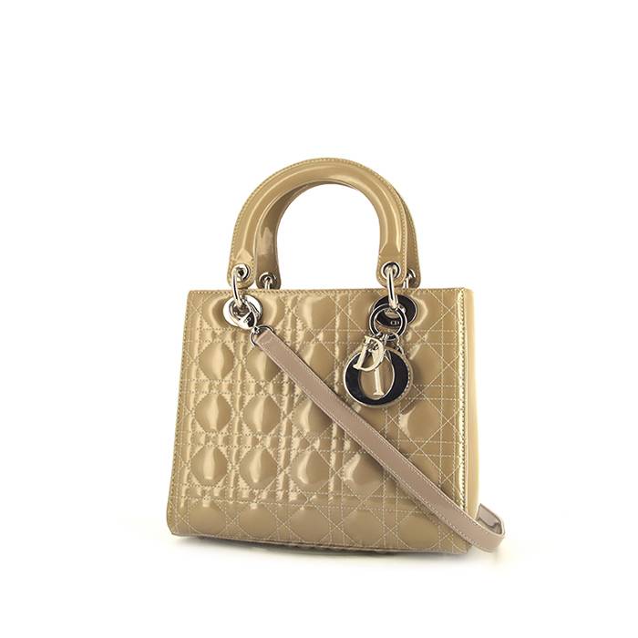 Borsa Dior Lady Dior modello medio in pelle verniciata beige e beige rosato cannage Ref Collector Square: 38 72 50