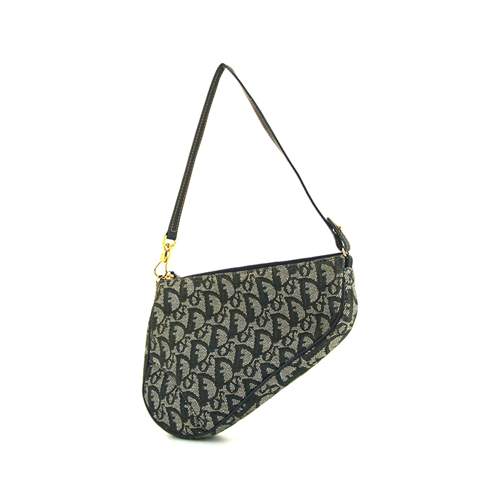Inimitabile pochette Dior Saddle in tessuto a monogramma Oblique, inserti in metallo dorato, manico in pelle blu marino pochette da portare a mano.