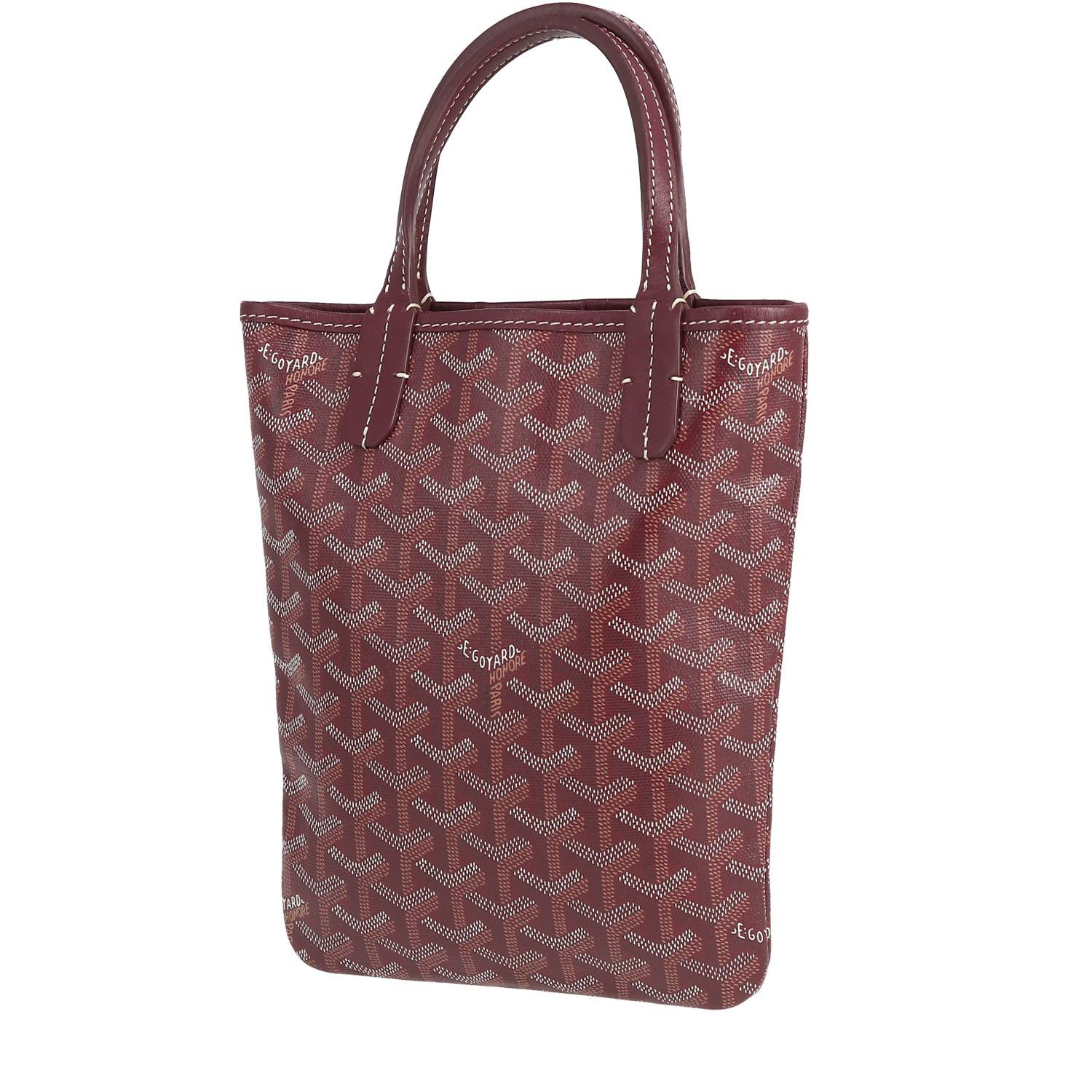 Bellissima borsa Goyard Poitiers in tela Goyardine bordeaux e pelle bordeaux, impunture bianche, doppio manico in pelle bordeaux da portare a mano.
