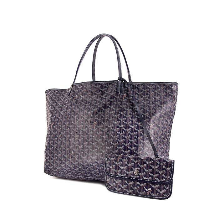 Elegante shopping bag Goyard Saint-Louis modello grande in tela siglata blu e pelle blu, impunture bianche, doppio manico in pelle blu da portare a mano o in spalla.