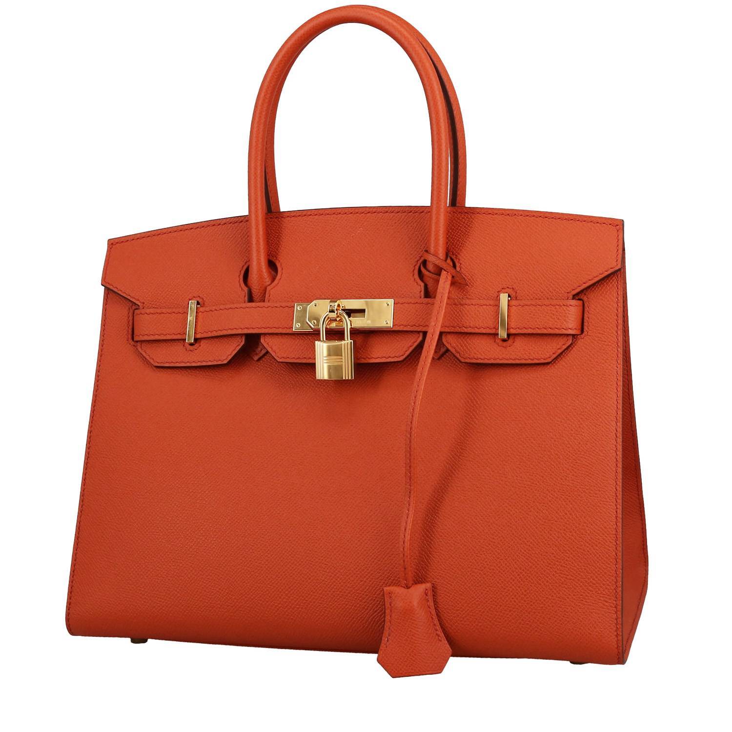 Splendida borsa Hermès Birkin 30 cm in pelle Epsom arancione, inserti in metallo dorato, doppio manico in pelle arancione da portare a mano.