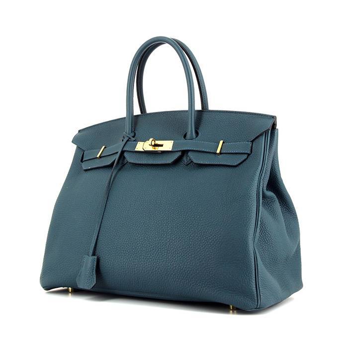Borsa Hermes Birkin 35 cm in pelle togo blu verde Ref Collector Square: 34 46 86