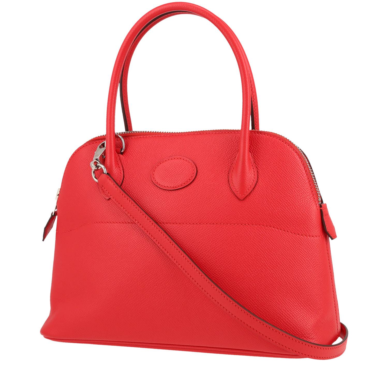 Graziosa borsa Hermès Bolide 27 cm in pelle Epsom rosso Casaque, inserti in metallo argentato, doppio manico in pelle rossa, una tracolla staccabile in pelle rossa da portare a mano o in spalla.