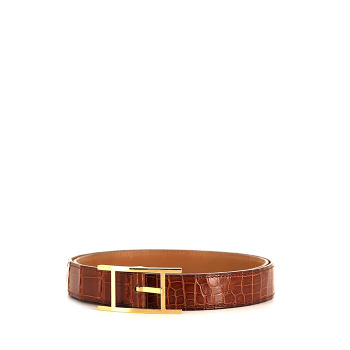 Elegante cintura Hermès Ceinture Quentin in alligatore, inserti in metallo dorato.