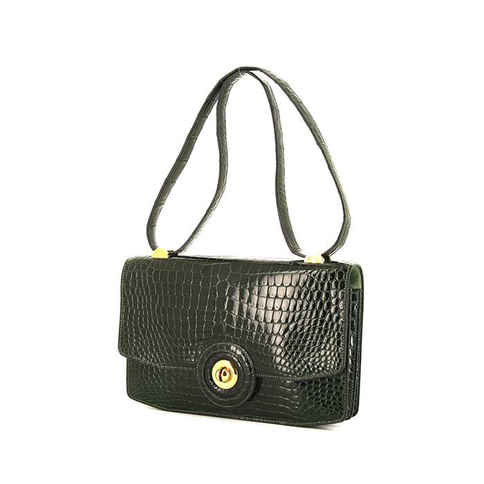 Borsa da spalla o a mano Hermès Cocarde in coccodrillo verde e nero Ref Collector Square: 36 46 18