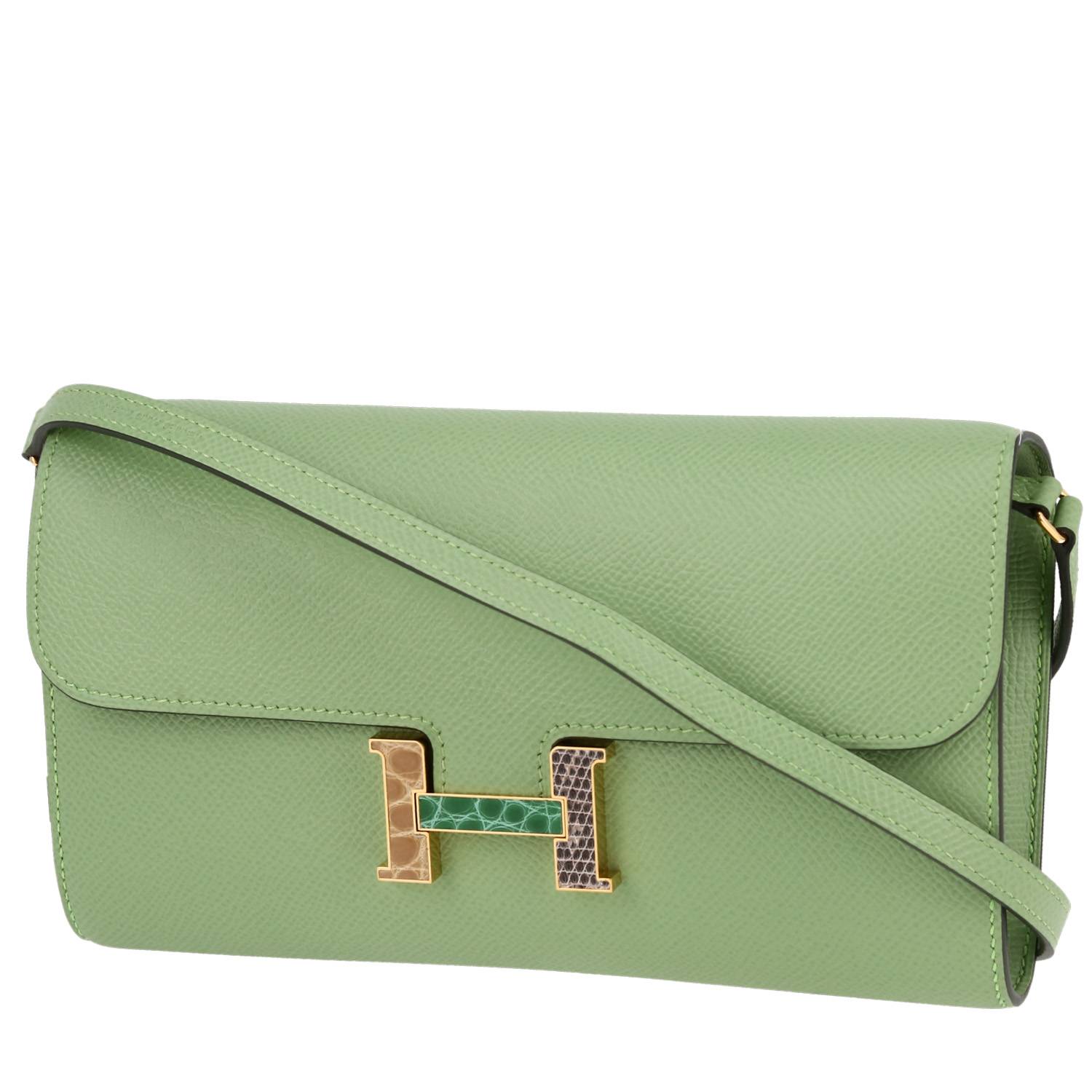 Borsa a tracolla Hermès Constance Long To Go in pelle Epsom Vert Criquet Ref Collector Square: 40 38 01