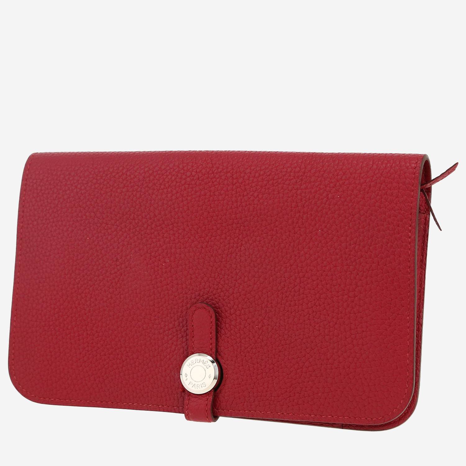 Incantevole portafogli Hermès Dogon in pelle togo rosso Rubis, inserti in palladio da portare a mano.