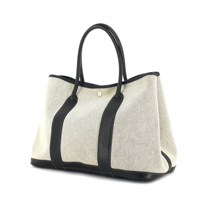 Borsa Hermes Garden in tela grigia e pelle nera Ref Collector Square: 29 49 05
