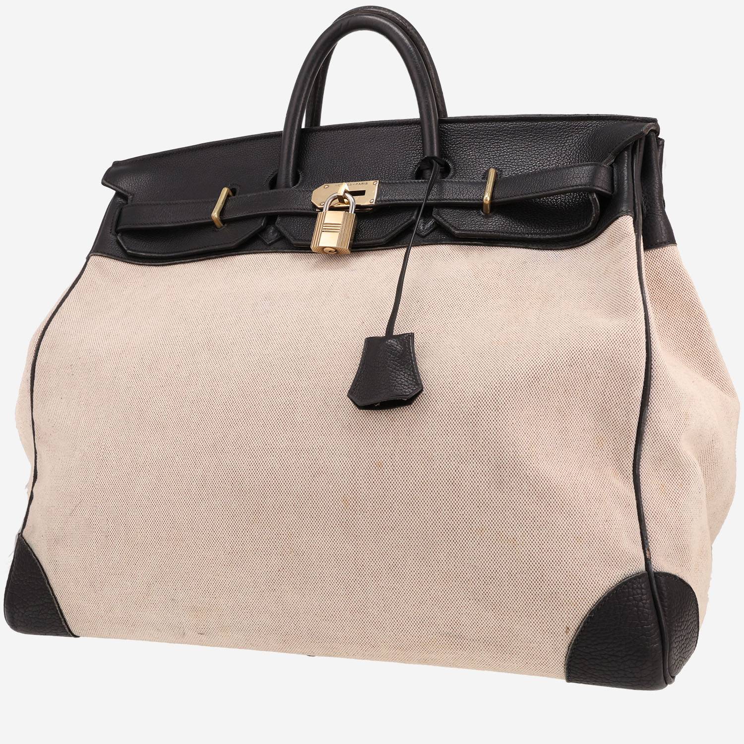 Borsa da viaggio Hermès Haut à Courroies in pelle nera e tela beige Ref Collector Square: 43 10 33