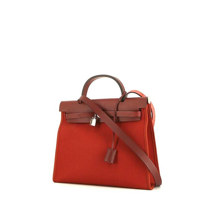 Borsa a tracolla Hermes Herbag in tela rossa e pelle bordeaux Ref Collector Square: 39 21 19