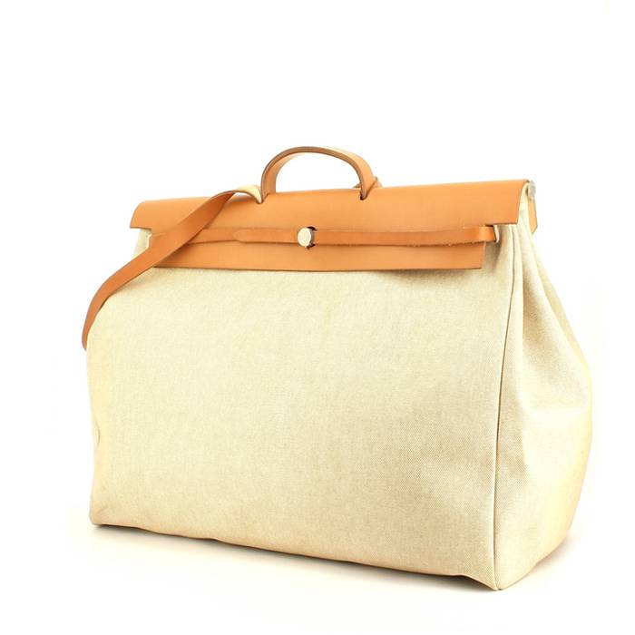 Borsa da viaggio Herbag in tela beige e pelle naturale Ref Collector Square: 29 10 91