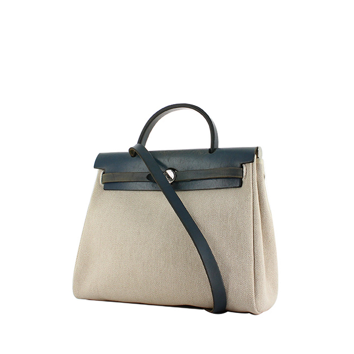 Borsa Herbag in tela beige e pelle blu scuro Ref Collector Square: 32 68 99