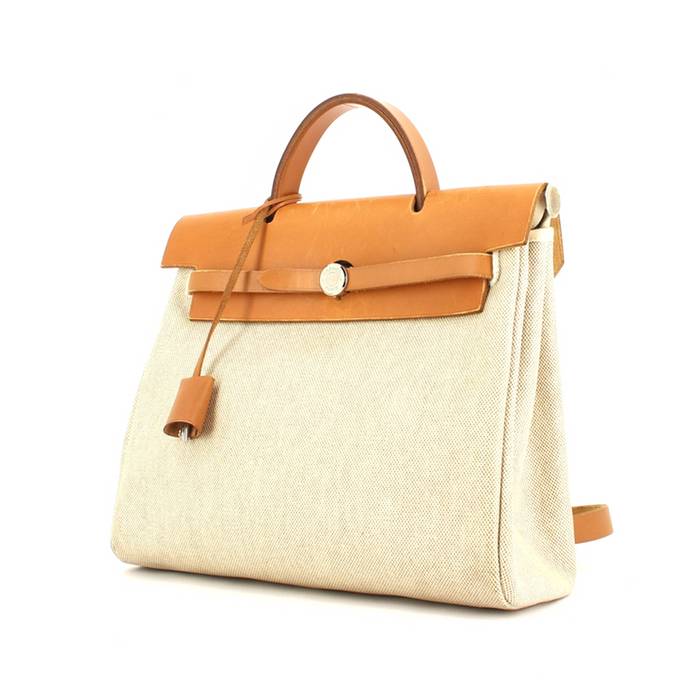 Zaino Herbag in tela beige e pelle naturale Ref Collector Square: 32 07 95