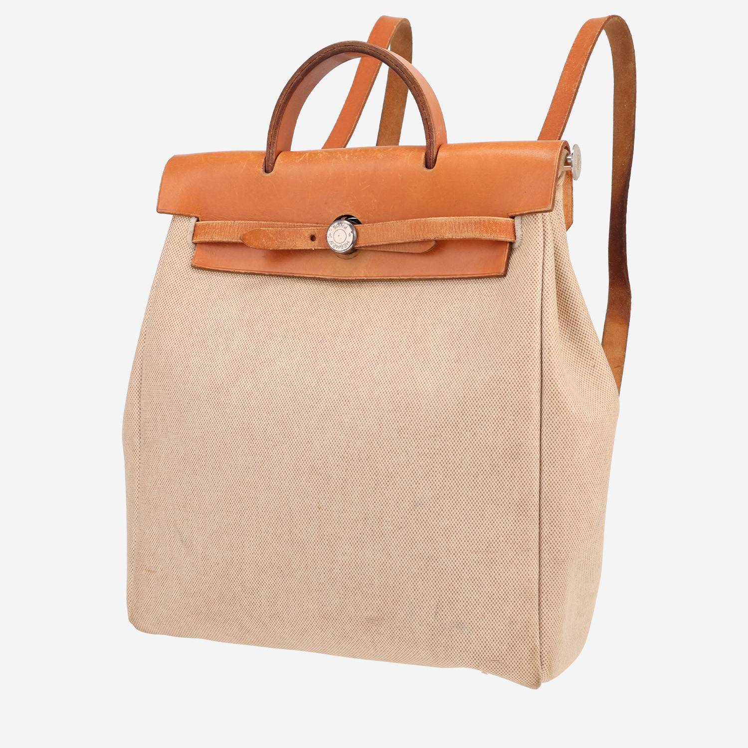 Zaino Hermès Herbag - Backpack in tela "H" beige e pelle gold Ref Collector Square: 43 12 84