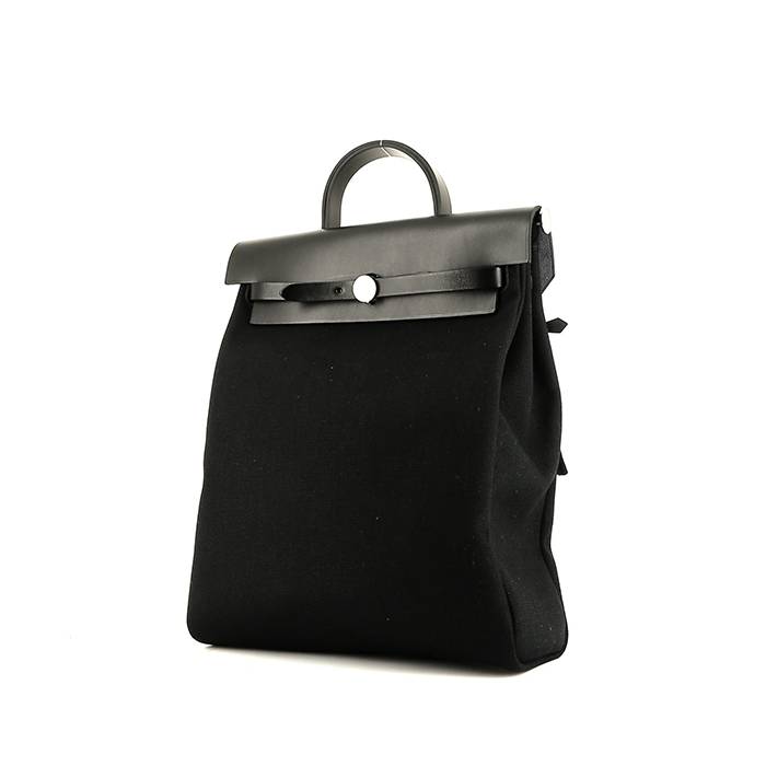 Zaino Hermès Herbag in tela nera e pelle nera Ref Collector Square: 39 43 33