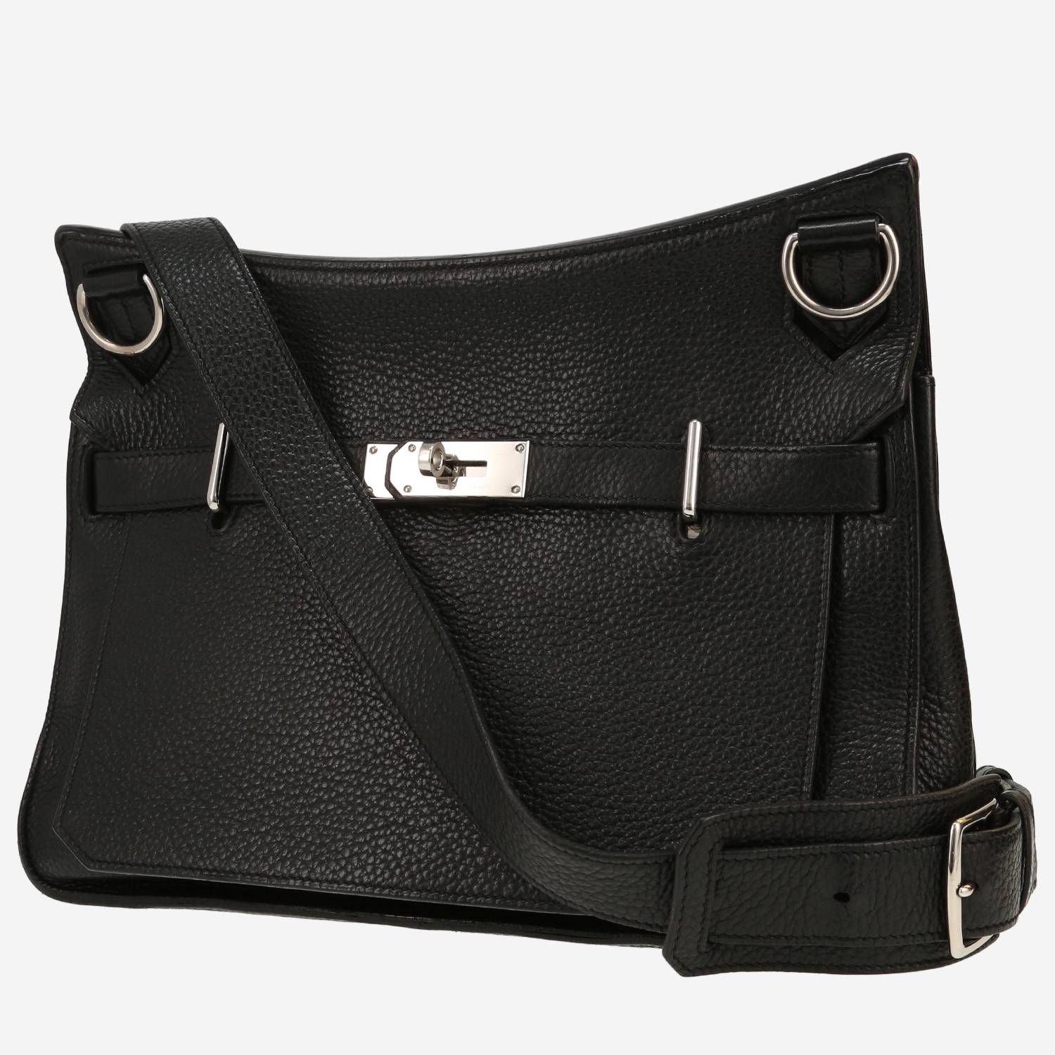 Magnifica borsa a tracolla Hermès Jypsiere 34 cm in pelle togo nero, inserti in palladio, tracolla rimovibile regolabile in pelle nera da portare in spalla o a tracolla.