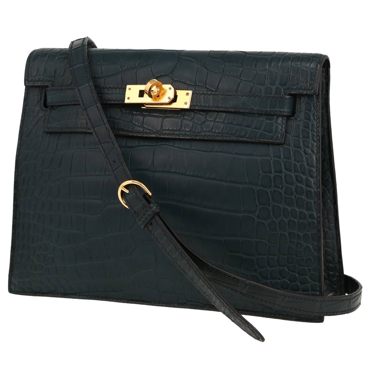 Splendida borsa a tracolla Hermès Danse in alligatore verde, inserti in metallo dorato, una tracolla removibile in alligatore verde da portare a mano, in spalla o a tracolla.